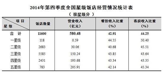 2014年第四季度星级饭店营业收入超580亿