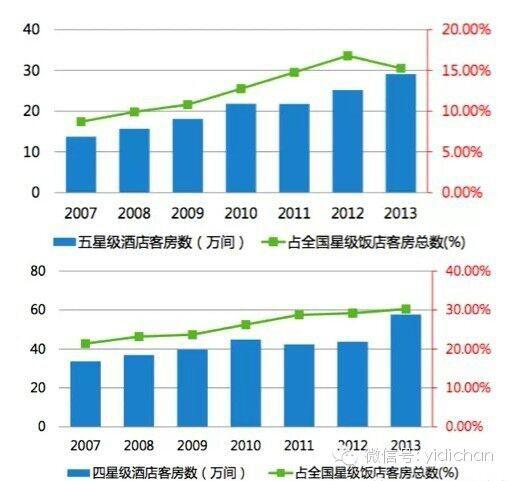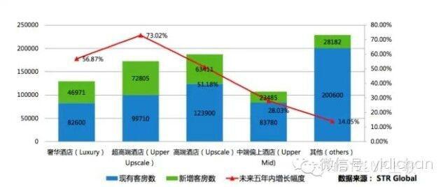 越高端的酒店增长率越大,高端和奢华酒店将以接近60%的增长速度增长。(弱弱的插一句,美国2013年豪华酒店的增长率是2%,欧洲是负数。)