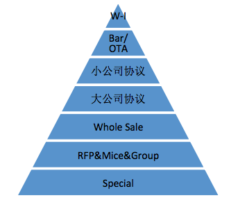 实际上,最高的Walk in散客,和低一些的OTA散客,和再低一些的协议散客,客人本身并没有任何区别,唯一不同的是客人是否能获取这个信息。这些前台现付的散客和Whole sale的客人也仅仅是有付款方式的差别。