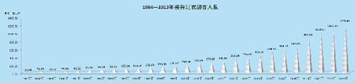 2013年,旅游收入233.33亿元,是自有旅游收入统计以来1997年的19.5倍,年均增长20.4%。