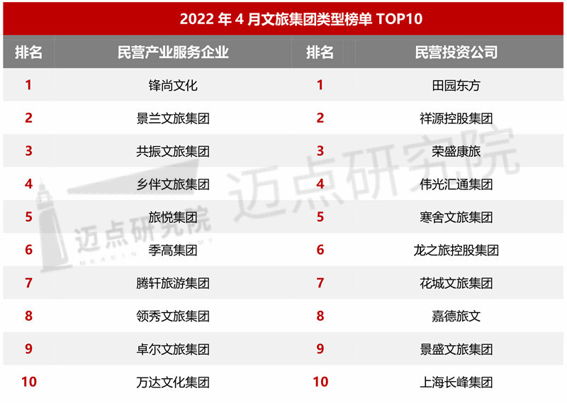 “2022年4月文旅集团品牌100强榜单”数据来源于迈点品牌指数MBI,根据4月迈点品牌指数MBI的657个文旅集团数据汇总统计而成。具体说明如下: