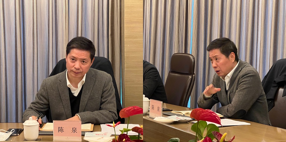 2022年2月8日,省委统战部副部长、省工商联党组书记陈泉一行莅临我商会调研座谈。