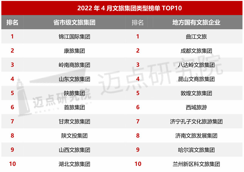 “2022年4月文旅集团品牌100强榜单”数据来源于迈点品牌指数MBI,根据4月迈点品牌指数MBI的657个文旅集团数据汇总统计而成。具体说明如下: